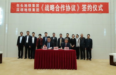 2016年12月5日下午,深圳地鐵集團(tuán)有限公司與包頭市地鐵投資(集團(tuán))有限公司簽署《戰(zhàn)略合作協(xié)議》。深圳地鐵集團(tuán)林茂德董事長、陳賢軍財務(wù)總監(jiān)、相關(guān)部門負(fù)責(zé)人,包頭市政府張建中副市長、馬富副秘書長,包頭地鐵集團(tuán)王勇董事長、鮑云飛黨委書記及班子成員等20多人出席簽字儀式并交流座談。
