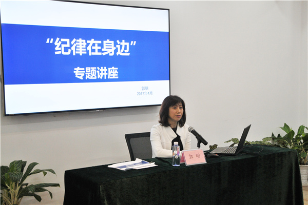 郭明書記首先簡要分析了當前的反腐形勢,并結(jié)合身邊案例,從黨紀黨規(guī)、法律法規(guī)多個角度,圍繞紀在法前、紀法銜接的原則,運用數(shù)據(jù)統(tǒng)計、概念解析、正反對比等方式深入分析,對身邊一些容易被忽視的紀律規(guī)定進行生動、直觀的延伸講解,貼切實際地警醒廣大員工哪些“禮尚往來”算違紀,哪些公務(wù)接待紅線碰不得,以及什么是受賄和違規(guī)收受禮金等問題。郭明書記還告誡大家,黨員領(lǐng)導干部強化自我約束不是小事,“微腐敗”也會成為“大禍害”,要切實從思想上筑牢廉潔從業(yè)的道德防線,樹立紅線意識,嚴守紀律底線,確保廣大黨員干部員工的執(zhí)業(yè)安全。最后,結(jié)合業(yè)務(wù)特點郭明書記再次強調(diào),在招投標過程中必須嚴格遵守相關(guān)法律法規(guī),杜絕發(fā)生違紀違法行為,尤其是項目合作要合法合規(guī)。