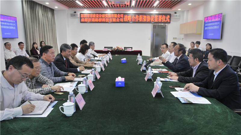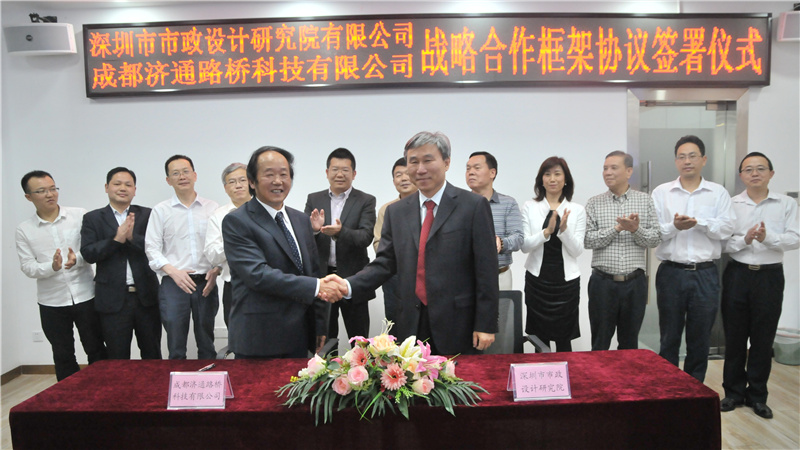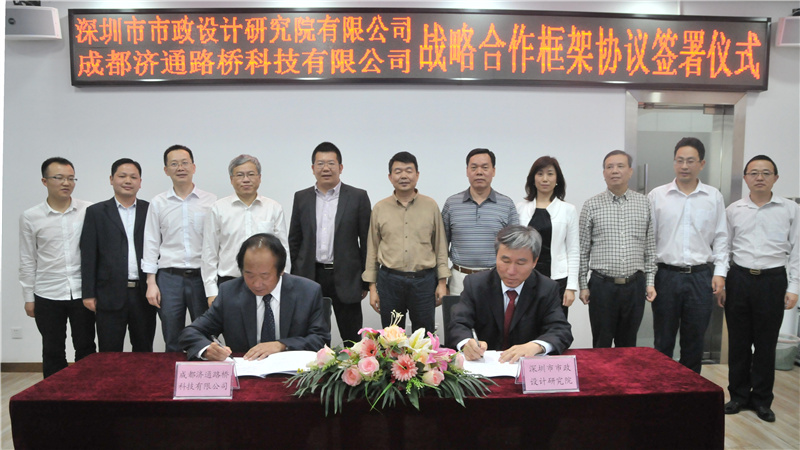 2017424日下午,我公司與成都濟(jì)通路橋科技有限公司(以下簡稱“濟(jì)通科技”)戰(zhàn)略合作框架簽署儀式在公司一樓技術(shù)交流中心舉行,董事長陳宜言設(shè)計大師和濟(jì)通科技伍廷貴董事長代表雙方簽字。蔡明總經(jīng)理、宋榮亮主席、郭明副書記、王建新副總經(jīng)理、張健君副總經(jīng)理、許華林副總經(jīng)理、徐波總工程師以及相關(guān)部門負(fù)責(zé)人和專業(yè)總工,濟(jì)通科技伍大成總經(jīng)理、趙鵬賢副總經(jīng)理,鄒貽軍技術(shù)總監(jiān)、技術(shù)部高建主任出席簽署儀式。儀式由我公司黨委副書記、紀(jì)委書記、工會主席郭明主持。
