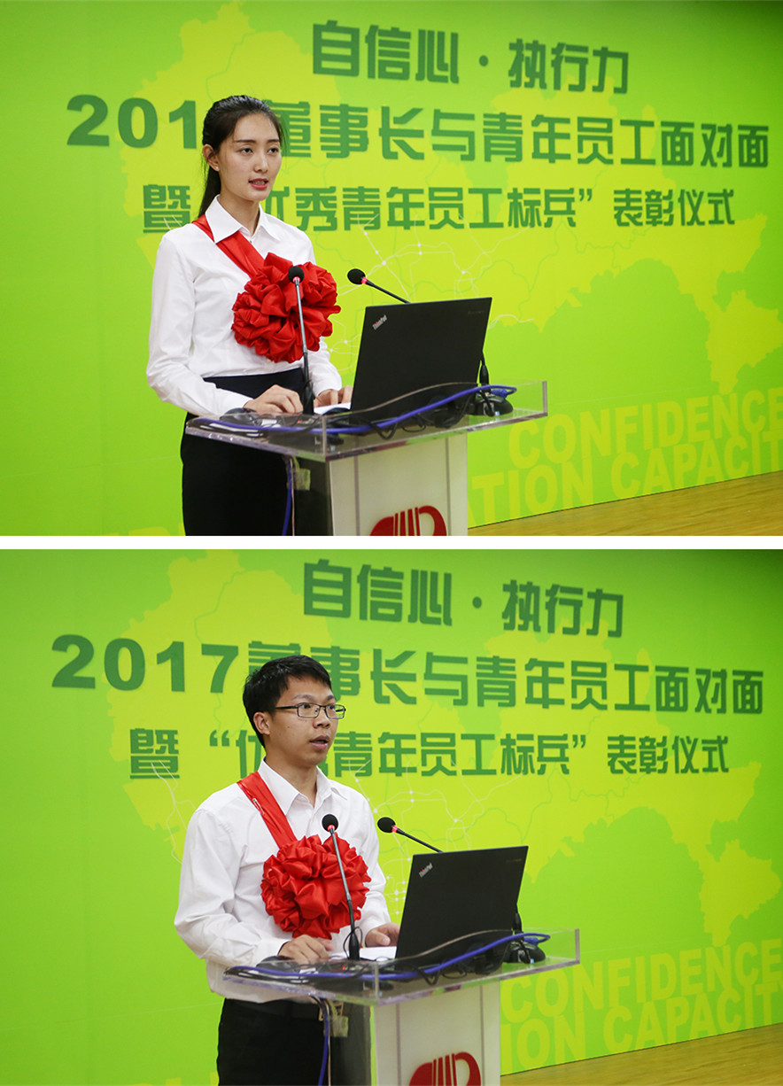 會(huì)上,陳宜言董事長(zhǎng)對(duì)受到表彰的青年標(biāo)兵表達(dá)了衷心的祝賀,希望他們珍惜榮譽(yù)、再接再厲,充分發(fā)揮模范帶頭作用,為廣大青年員工作好表率。最后,董事長(zhǎng)作了題目為《自信心與執(zhí)行力》的主題講座,他指出青年員工要樹立自信心,正視自己、善待他人,傳遞陽(yáng)光正能量,要培養(yǎng)執(zhí)行力,學(xué)會(huì)溝通、學(xué)會(huì)落實(shí),成長(zhǎng)為優(yōu)秀青年。青年員工聽(tīng)完講座后,紛紛踴躍提問(wèn),與董事長(zhǎng)進(jìn)行了親密的互動(dòng)。