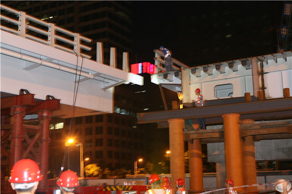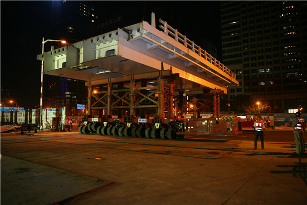 2017年922日至23日,國內首架采用標準化SPMT技術施工的深圳市崗廈北綜合交通樞紐工程鋼便橋架設成功。架設方案由我公司提出,完全符合業(yè)主方地鐵集團對于降低施工現(xiàn)場對環(huán)境及交通影響的要求,中國中鐵第二工程局具體實施。