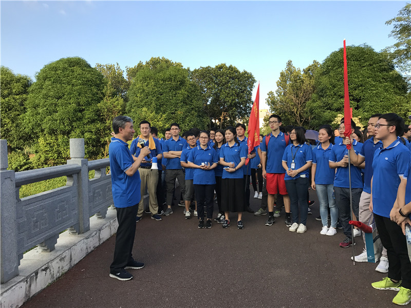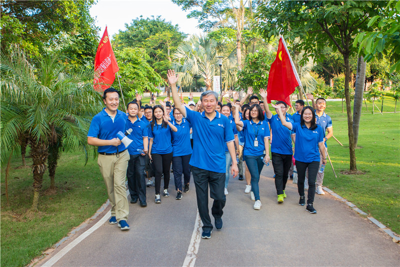 時節(jié)正初秋,諸君結(jié)伴游。當(dāng)天下午,董事長陳宜言大師率近150名青年員工統(tǒng)一著裝,參與了“慶國慶 迎中秋”健走活動,員工們排著整齊的隊伍、邁著矯健的步伐、意氣風(fēng)發(fā)地朝著中心公園前進(jìn),健步走隊伍宛如一條藍(lán)色的市政蛟龍穿梭于中心公園。員工個個興致高漲,盡情享受秋游健走之樂。健走期間,董事長精彩的知識科普,更是將健步走活動的興致推向頂峰。青年員工們在強(qiáng)身健體之時,也學(xué)習(xí)了更多的知識?!霸轮杏锌驮址N,世上無花敢斗香”,雖因地域和氣候原因,無菊無桂可賞,但與大師及眾多同事同行,濃濃的“家文化”氤氳其間,可以說,縱使花中第一流,亦可憑此斗花香!