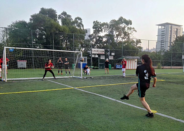 比賽在對陣雙方友好的握手中結(jié)束,今日比賽賽況為三院/交通院聯(lián)隊3:0深鐵咨詢隊;二院/黨群辦聯(lián)隊3:0建筑院/創(chuàng)新院聯(lián)隊;軌道院隊3:2一院隊;東莞院/BIM院/四院聯(lián)隊0:0勘測院/地保辦聯(lián)隊。女生點球大戰(zhàn)賽況為三院/交通院聯(lián)隊0:1深鐵咨詢隊,二院/黨群辦聯(lián)隊1:2建筑院/創(chuàng)新院聯(lián)隊,軌道院隊3:3一院隊,東莞院/BIM院/四院聯(lián)隊2:1勘測院/地保辦聯(lián)隊。