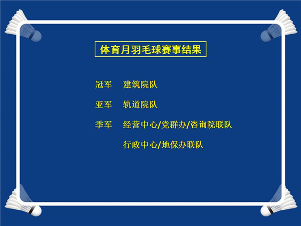 本次體育月自111日開幕以來,歷時一個月,設(shè)置了足球、籃球、羽毛球、乒乓球、攝影等比賽項目,各部門積極參與,反響空前。