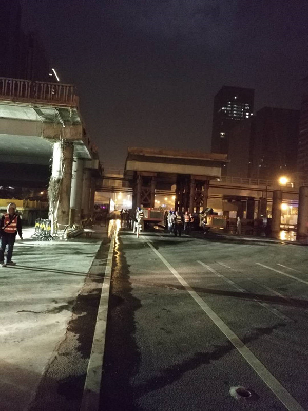 2017年1229晚,陳宜言設(shè)計(jì)大師親赴現(xiàn)場(chǎng)指導(dǎo)橋梁拆除,陳宜言大師工作室主任何曉暉、市政四院副院長(zhǎng)喬曉冉、長(zhǎng)春設(shè)計(jì)分院副院長(zhǎng)涂俊及項(xiàng)目組成員王延飛、孫志國(guó)等作為技術(shù)服務(wù)組全程提供技術(shù)支持。