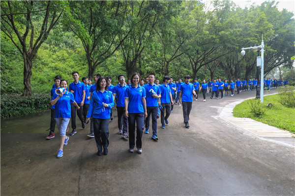 當(dāng)天下午,300余名青年員工統(tǒng)一著裝,前往筆架山公園開展健走活動。健走途中,對植物有獨(dú)到研究的同事們發(fā)揮專業(yè)之長,沿途講授植物百科,并帶領(lǐng)大家認(rèn)識了形態(tài)各異的植物:有公園入口迎賓的高大美麗的異木棉、具有150年歷史的古老滄桑的魚木樹、頗有名氣的中國無憂樹、一日落花的印度紫檀、稀有的酸豆樹等等,特別對設(shè)計(jì)師們應(yīng)該了解的園林景觀知識點(diǎn)進(jìn)行普及,加深了大家對設(shè)計(jì)理念的思考。迎著秋風(fēng)習(xí)習(xí),踏著落葉片片,在自然之間的我們不僅舒緩了工作壓力,同時(shí)發(fā)現(xiàn)植物之美,更是以行走的力量踐行著綠色健康的生活方式,展現(xiàn)出市政院人青春活力的昂揚(yáng)面貌。