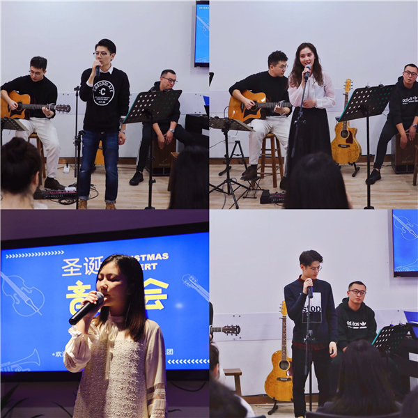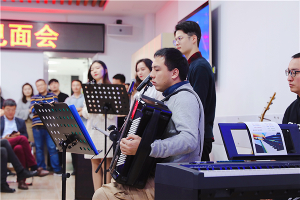 演出現(xiàn)場,樂團(tuán)成員通過豐富的互動(dòng)游戲、詼諧的串場、形式種類多樣的音樂表演給同事們帶來了一場視聽盛宴。開場一首歡快的樂器合奏《鈴兒響叮當(dāng)》便點(diǎn)燃了觀眾的熱情;節(jié)奏感和感染性極強(qiáng)樂器三連奏《The Game Is On》《Star Sky》《He's A Pirate》將演出的氣氛推向高潮;《成都》《小幸運(yùn)》《曾經(jīng)的你》《天黑黑》《貝加爾湖畔》等不同形式的曲目表演讓現(xiàn)場觀眾樂享其中。特邀嘉賓Yakup老師的精彩演出使得現(xiàn)場氣氛熱烈異常;最后,樂團(tuán)組織現(xiàn)場觀眾即興合唱《遇見》《后來》,現(xiàn)場的歌聲記錄了同事們?yōu)橐魳范袆?dòng)的瞬間。