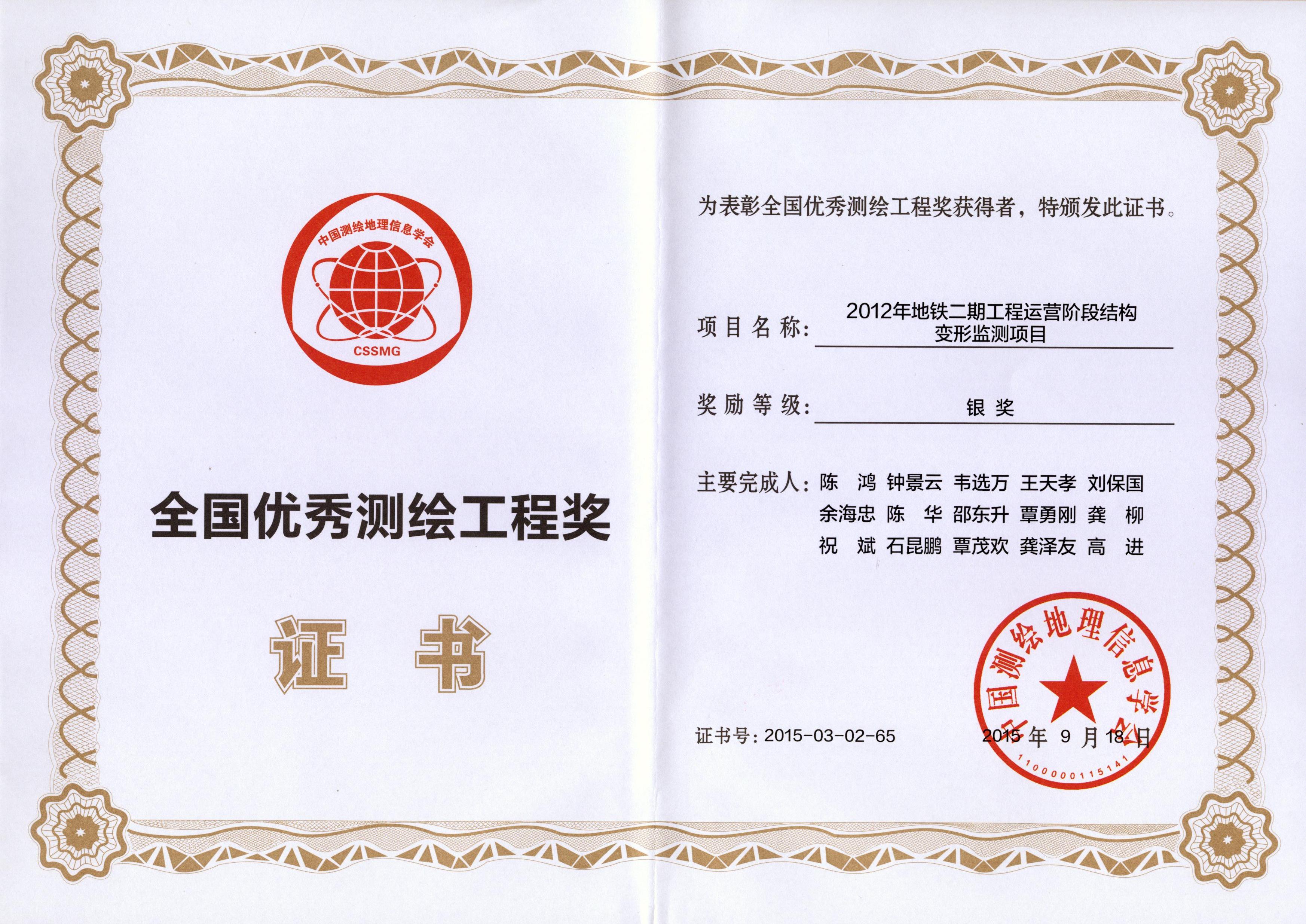 2012年地鐵二期工程運(yùn)營(yíng)階段結(jié)構(gòu)變形監(jiān)測(cè)項(xiàng)目