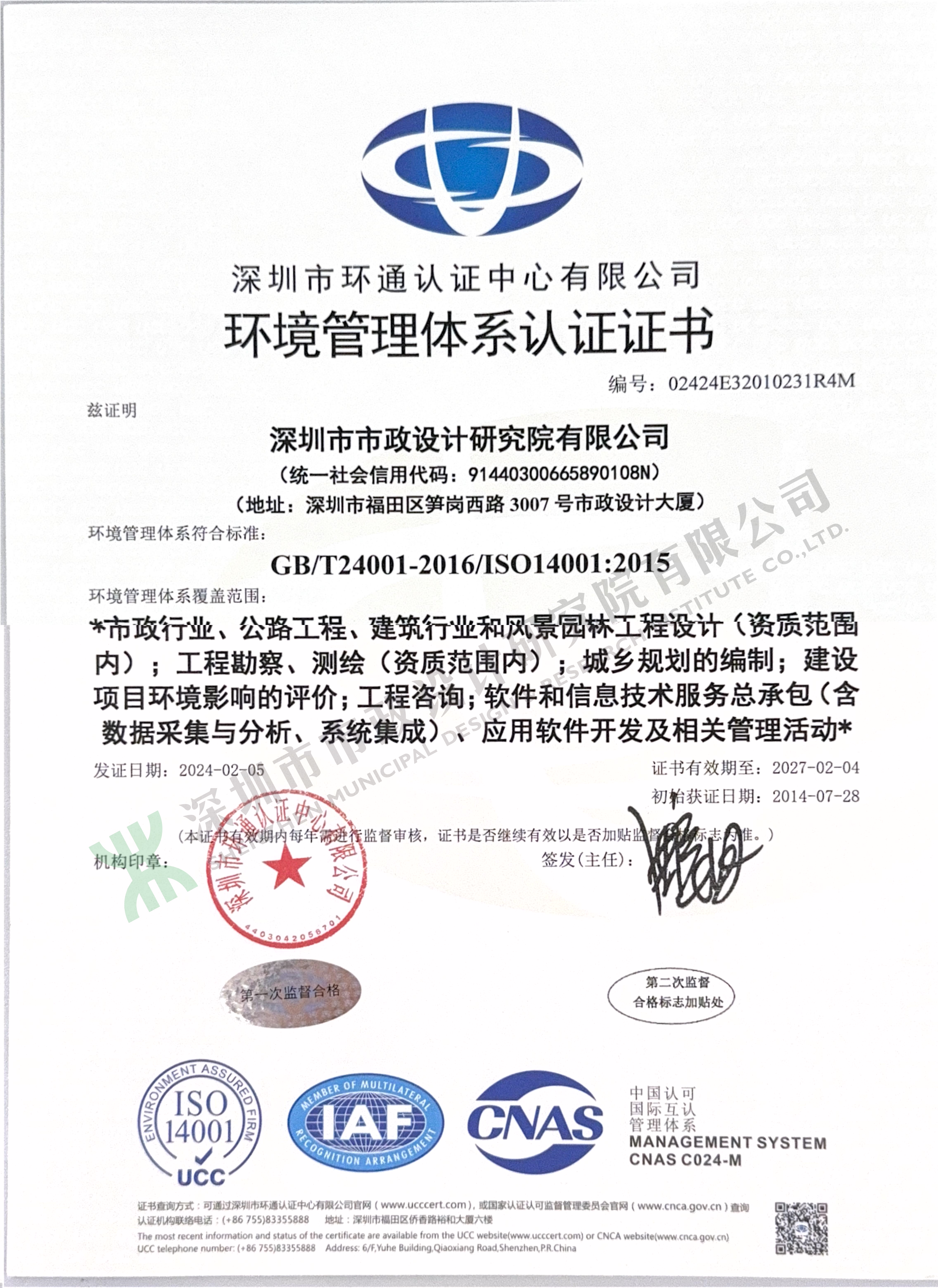 環(huán)境管理體系認(rèn)證證書